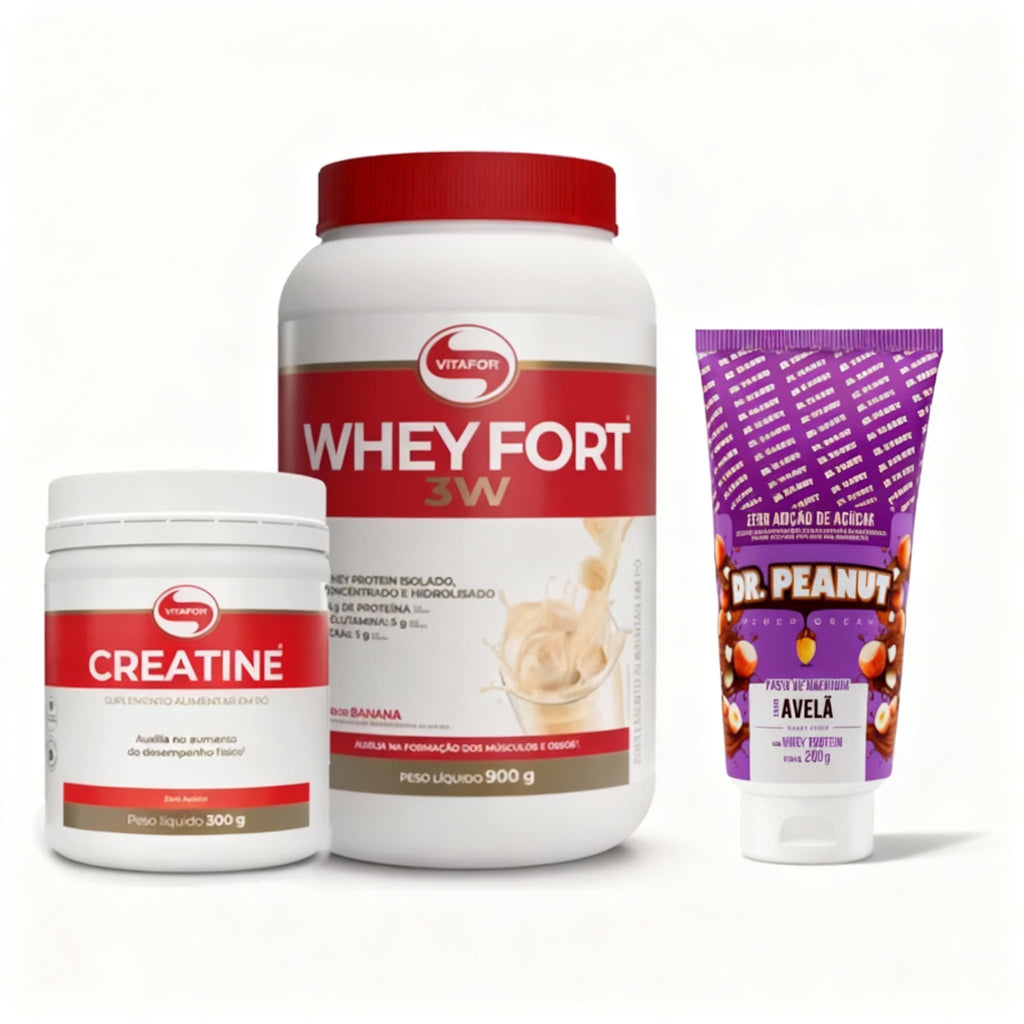 Experimente o Combo Nutrição Total e transforme seus resultados! Com Whey Protein para uma recuperação muscular rápida, Creatina que aumenta sua força e explosão, e Pasta de Amendoim para energia prolongada e saciedade, você tem tudo que precisa para alcançar seus objetivos. Não perca a chance de impulsionar seu treino com essa combinação poderosa e prática. Garanta já o seu e sinta a diferença!