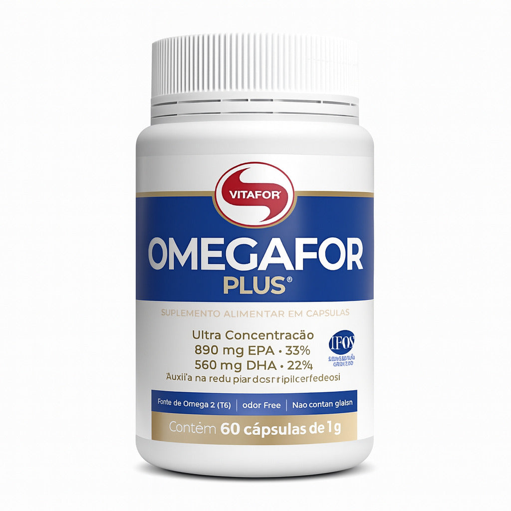 Ômegafor Plus é um suplemento de ômega-3 de alta concentração e pureza, desenvolvido pela Vitafor com tecnologia avançada de purificação (processo de destilação molecular), garantindo um produto livre de metais pesados e impurezas.